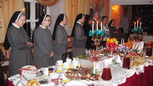 Le suore della comunità di Via Lesna e il gruppo locale del MLO, si sono incontrati per condividere l’“oplatek” e gli auguri natalizi in un momento di fraternità. L’incontro è iniziato con la preghiera del Vespro, dopodiché tutti i partecipanti si sono riuniti nella sala della casa. E’ stato letto il brano dal Vangelo della nascita di Gesù. Sr M. Marta Kalinowska, direttrice dell’Istituto Educativo e sr M. Carità Harezlak, Superiora della comunità, hanno fatto a tutti gli auguri di Buon Natale seguiti dai canti natalizi. L’incontro si è svolto in un clima di famiglia, arricchito dalla testimonianza della vita di fede del signor Krzysztof Grochulski, membro del MLO.
