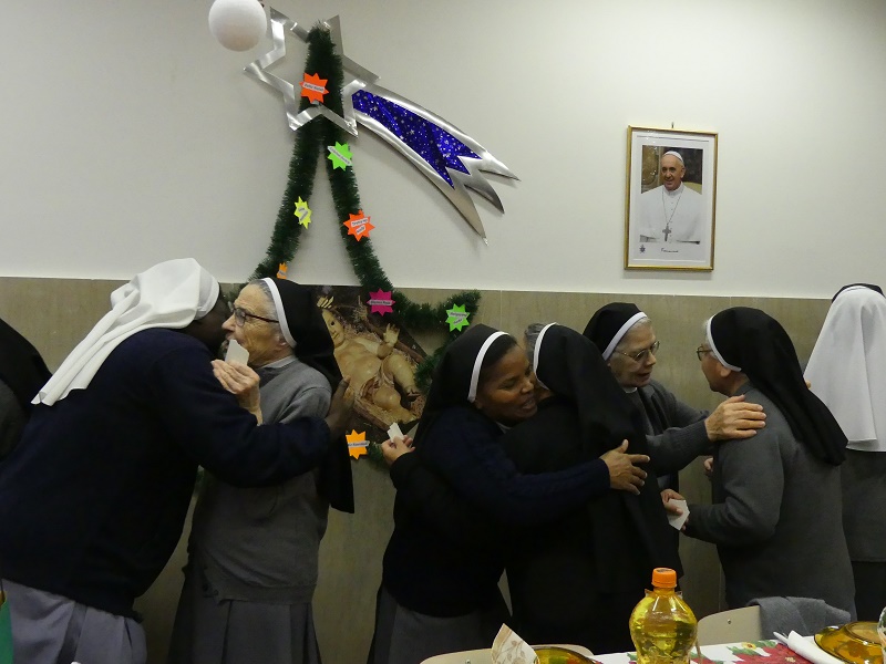 In questo clima di gioia, la comunità della casa Generale ha festeggiato Il Santo Natale. La Santa Messa della Veglia è stata presieduta da Don Giacomo, Cappellano della Casa generalizia e quella del giorno da Don Tarcisio, Direttore Generale dei Figli della Divina Provvidenza, che ha pregato per la Madre generale e per tutte le PSMC che sono sparse nel mondo seminando la carità.