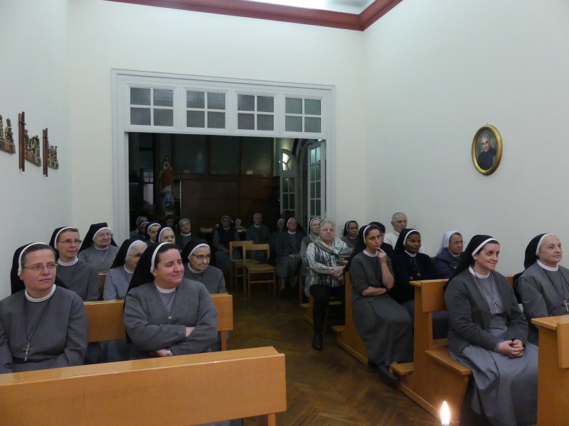 Il mistero dell’Incarnazione illumina in modo particolare la celebrazione dell’Eucarestia in Casa Provinciale, presieduta dal confratello don Filippo Benettazzo, maestro dei novizi, con la partecipazione dei novizi  e di numerose consorelle che hanno voluto condividere nella preghiera e nell’agape fraterna il ringraziamento al Signore per l’operato del Consiglio Provinciale uscente presieduto da Sr. M. Vilma Rojas e per il nuovo inizio del Consiglio Provinciale presieduto da Sr. M. Gemma Monceri.
