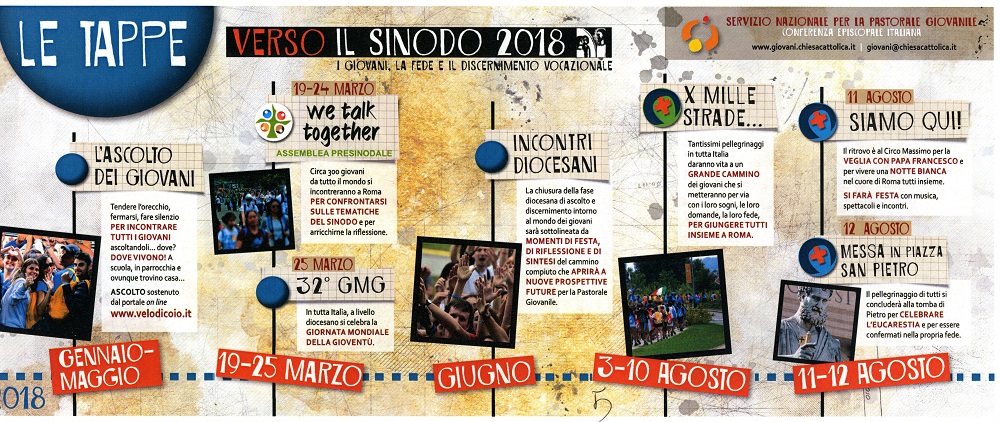 Come ogni cammino, anche quello verso il Sinodo dei Giovani 2018, che punterà la sua attenzione sull’annuncio della fede e l’accompagnamento delle nuove generazioni, è fatto di tappe su cui soffermarsi per poi ripartire e arrivare alla meta finale.
